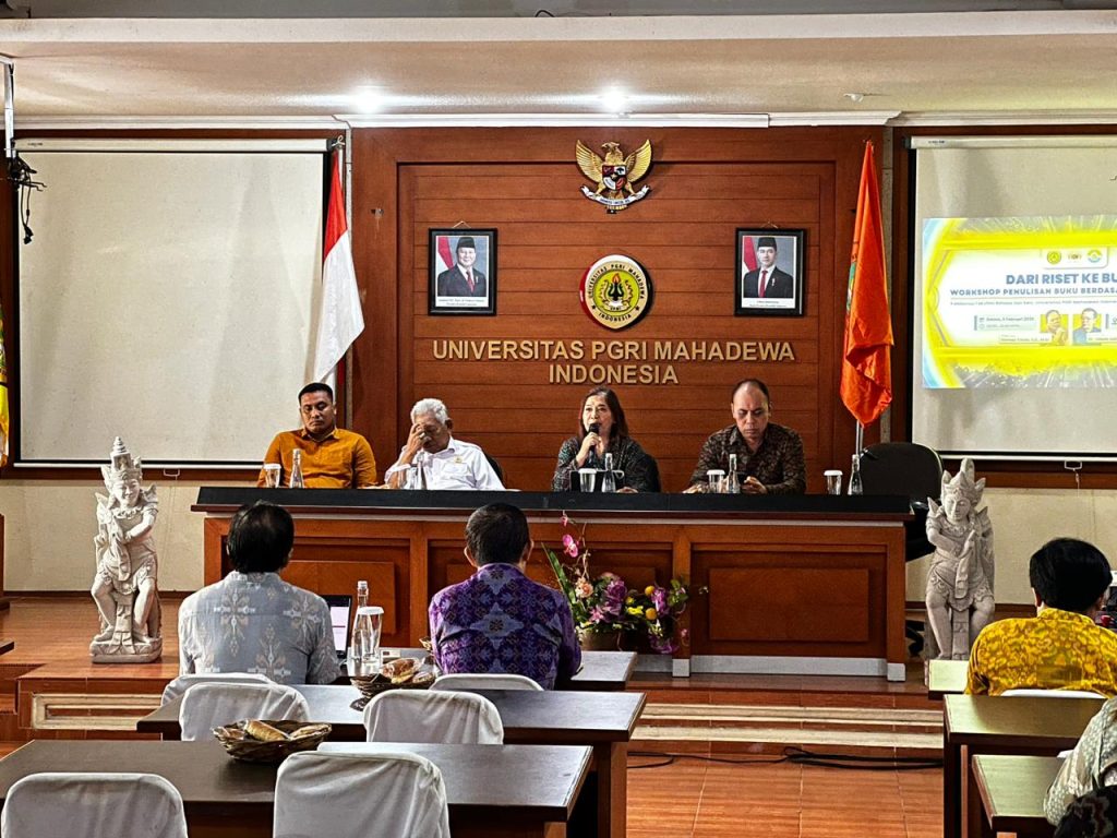 Denpasar, 3 Februari 2026– Fakultas Bahasa dan Seni (FBS) Universitas PGRI Mahadewa Indonesia (UPMI) menyelenggarakan kegiatan Workshop Penulisan Buku Monograf dan Buku Ajar Berdasarkan Hasil Riset yang berlangsung di lingkungan kampus UPMI Bali. Kegiatan ini dihadiri oleh dosen Fakultas Bahasa dan Seni, jajaran pimpinan fakultas, serta pimpinan lintas fakultas di lingkungan Universitas PGRI Mahadewa Indonesia.